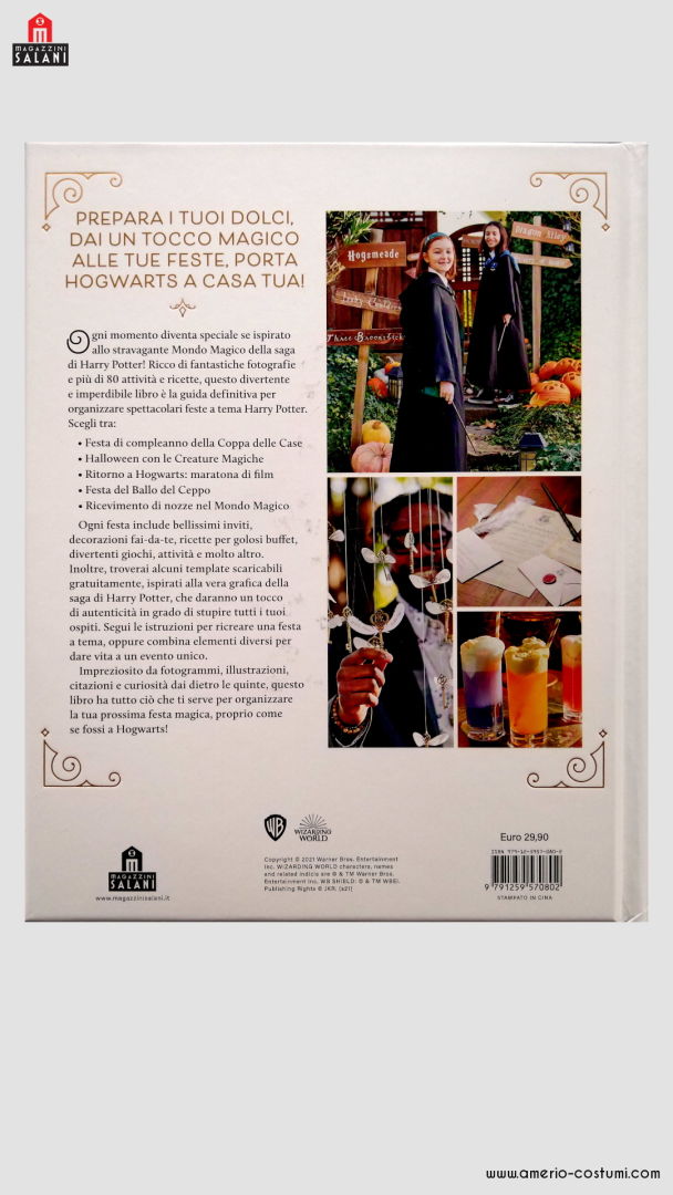 Scegli tra: Festa di compleanno della Coppa delle Case; Halloween con le Creature Magiche; Ritorno a Hogwarts: maratona di film; Festa del Ballo del Ceppo; Ricevimento di nozze nel Mondo Magico Ogni festa include bellissimi inviti, decorazioni fai-da-te, ricette per golosi buffet, divertenti giochi, attività e molto altro.