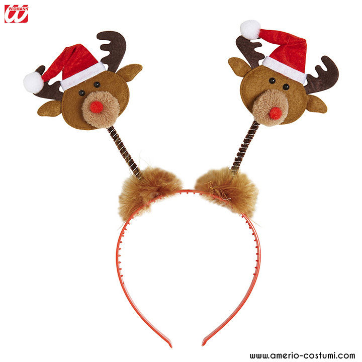 Cerchietto con Renne con cappellino da Babbo Natale.