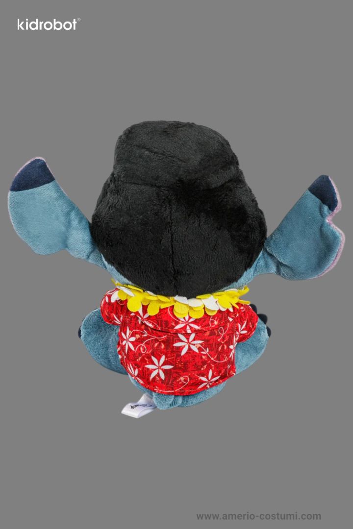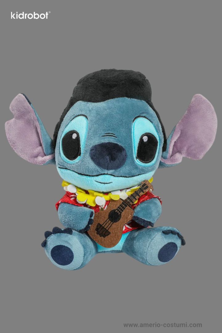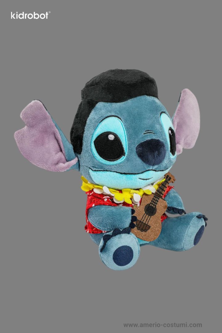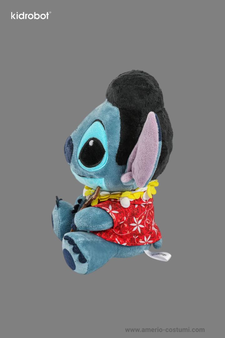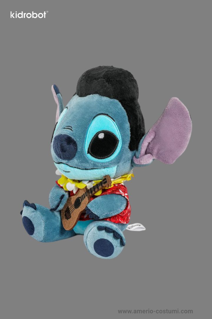 Peluche Disney Stitch Elvis Kidrobot 19 cm, ufficiale, con camicia hawaiana e ukulele, da collezione.