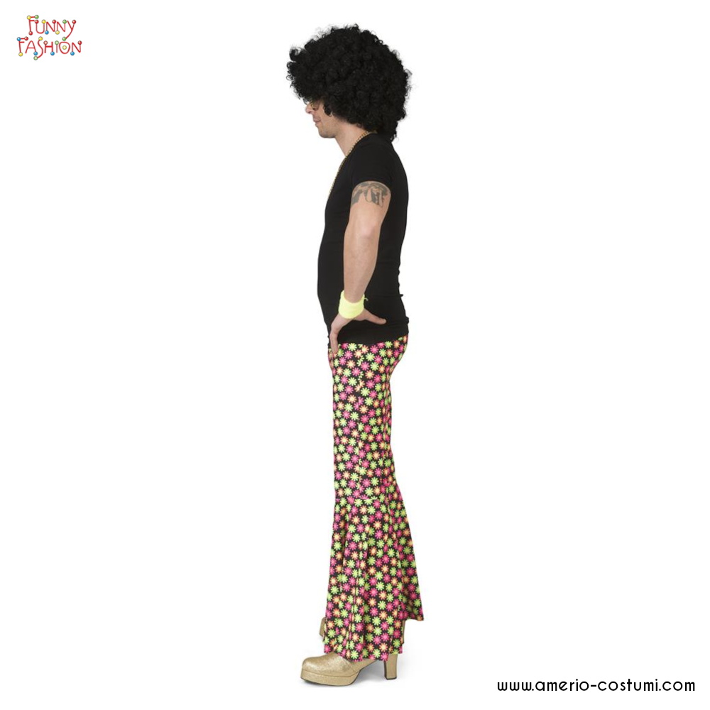 Sia che tu stia partecipando a una festa a tema hippie, un concerto all'aperto o desideri semplicemente abbracciare lo spirito degli anni '60, questi pantaloni a zampa saranno l'elemento essenziale per creare un look iconico e indimenticabile. Combinali con una camicia floreale o un poncho o un gilet frangiato e preparati a danzare e a vivere l'atmosfera di pace, amore e libertà dei tempi passati.