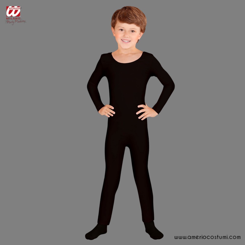 Tuta nera in lycra, accademico, a manica lunga, scollato.