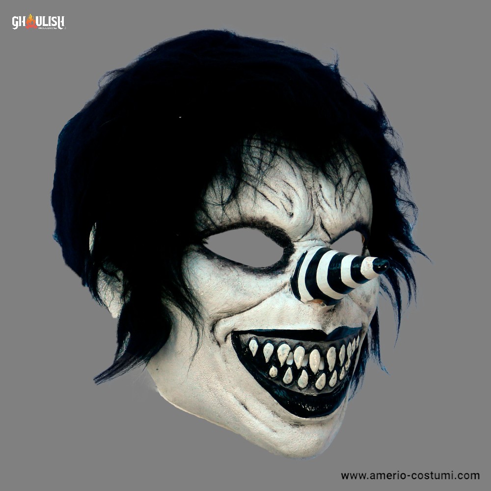 Latexmaske von Ghoulish Productions, dem berühmten mexikanischen Unternehmen, das auf die Herstellung hochwertiger Masken spezialisiert ist. Jedes Stück ist handbemalt und mit Liebe zum Detail gefertigt, was einen realistischen und eindrucksvollen Effekt garantiert.