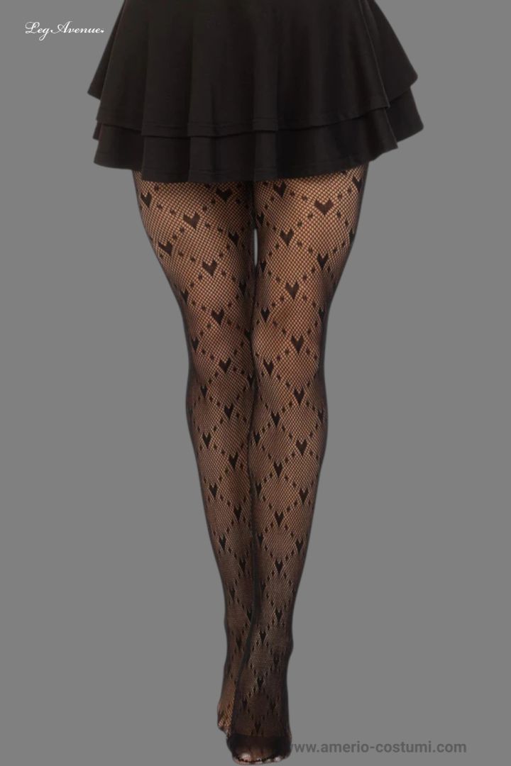 Leg Avenue Love Struck Netzstrumpfhosen mit Herzen: elegant und feminin, mit gesteppter Herzoptik. Perfekt, um jedem Outfit einen romantischen und sinnlichen Akzent zu verleihen.