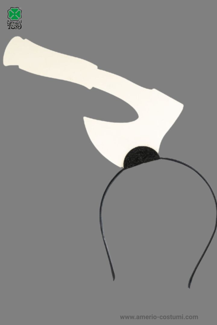 Ein spektakuläres Horror-Accessoire: Kunststoff-Stirnband mit eingelegter, falscher Axt aus leichtem Karton. Der Effekt vermittelt die Illusion, dass der Kopf von der Axt getroffen wurde, perfekt für gruselige Kostüme, Halloween oder Horror-Partys.