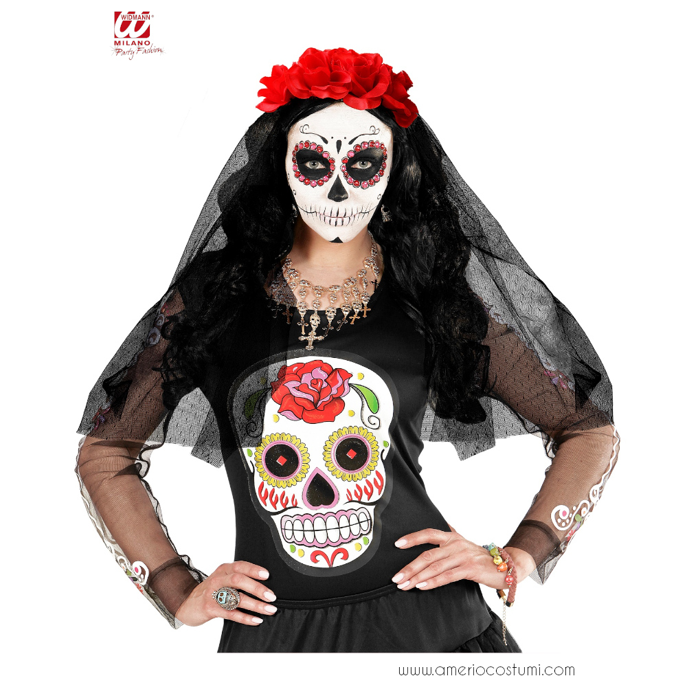 • Schwarzer Schleier-Kopfschmuck mit roten Rosen