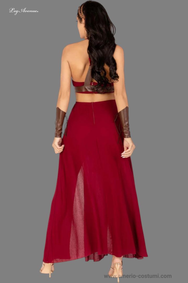 Verwandeln Sie sich in eine unwiderstehliche Kriegergöttin mit diesem Kostüm von Leg Avenue. Das lange Kleid mit hohem Schlitz aus leichter, roh geschnittener Gaze wird durch ein O-Ring-Detail veredelt, das die Silhouette betont. Der Kunstlederriemen mit Schnalle verleiht Stärke und Charakter, während der Doppelgürtel und die passenden Manschetten das Outfit mit epischem Stil abrunden.