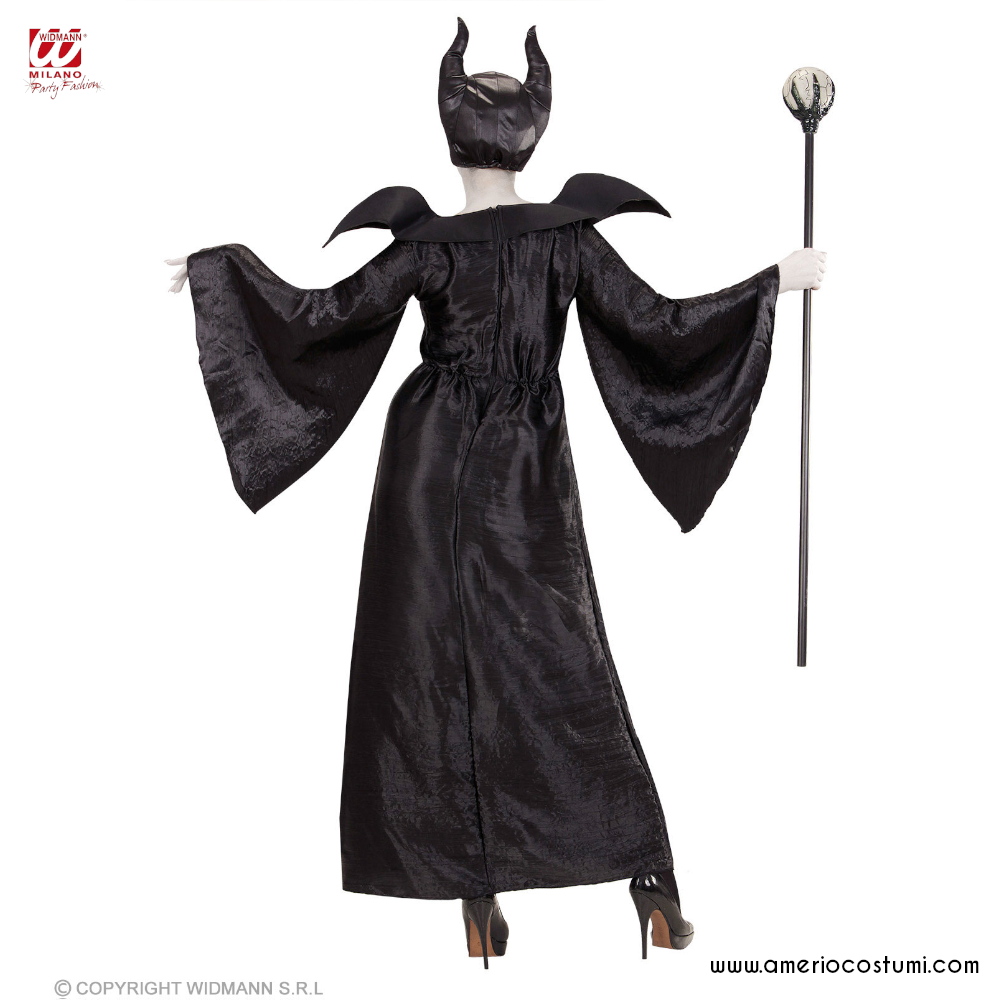 Costume inspired by Maleficent, consisting of a long dress with wings and a headpiece. Available in various sizes.