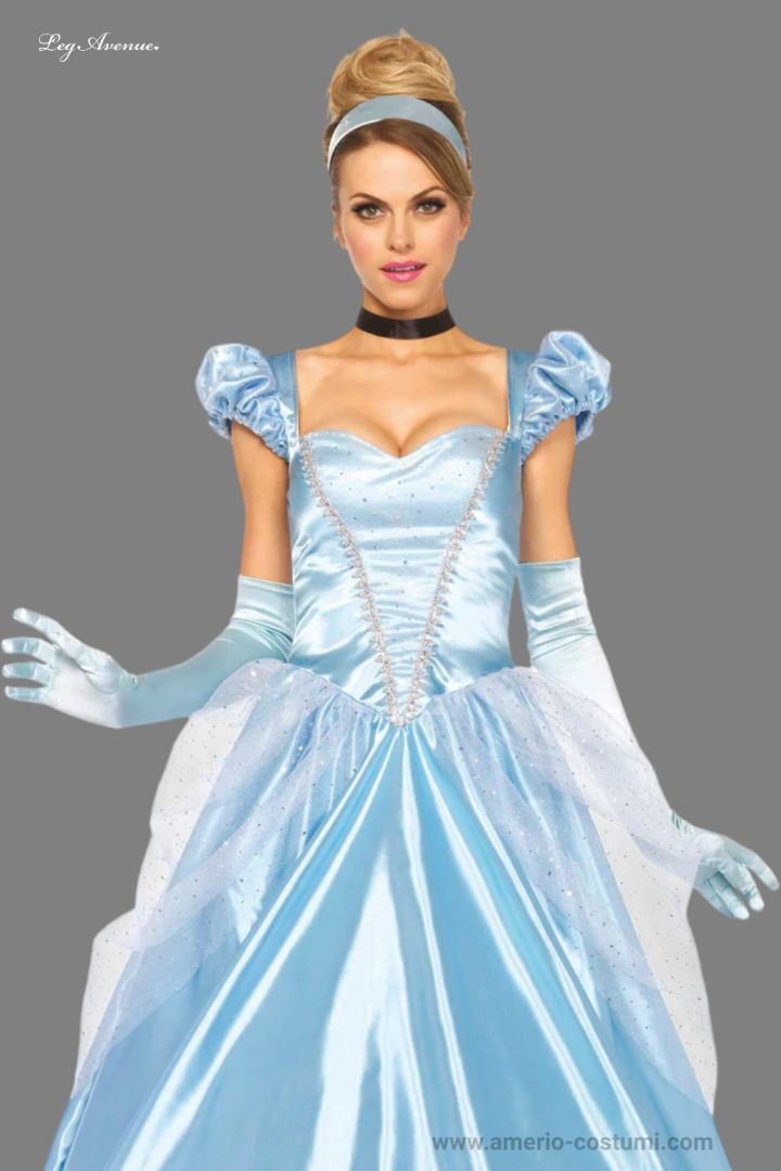 Leg Avenue Classic Cinderella Gown Costume: long satin ball gown with glitter tulle, satin choker, and matching headband. Perfect for Halloween, theme parties, or cosplay. Available in multiple sizes.