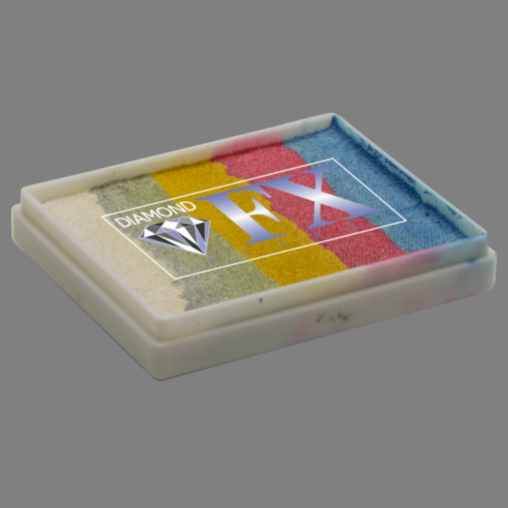 Diamond FX Facepaint is a high-quality water-based colour that can be applied directly to the skin. To activate it, simply use a small amount of water. The amount of water used affects the final result, so it is advisable to use a minimal amount for the best effect.