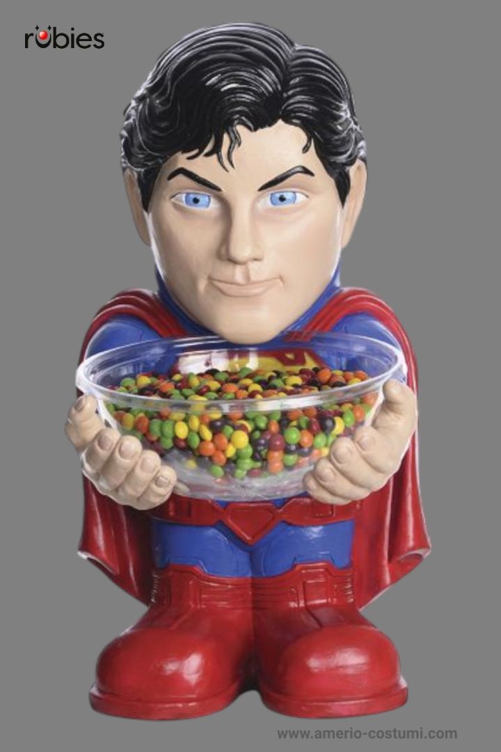 Standing about 50 cm tall, it depicts the Man of Steel ready to offer sweets, snacks or small items. The transparent front bowl can be used not only as an original candy holder, but also as a practical tray for keys, coins and everyday accessories.