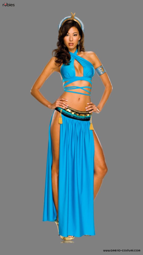Disfraz compuesto por Top, Falda con velo y colgantes, Diadema y Brazalete.