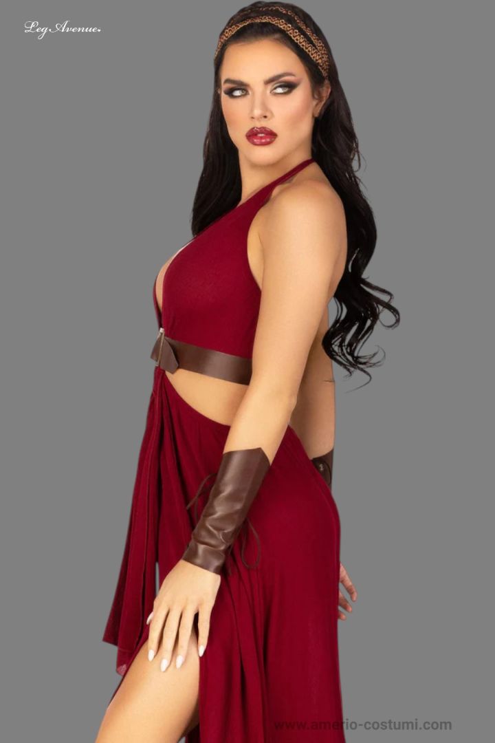 Conviértete en una diosa guerrera irresistible con este disfraz de Leg Avenue. El vestido largo con abertura alta en gasa ligera de corte en crudo está adornado con un detalle de aro O que realza la silueta. El tirante de polipiel con hebilla aporta fuerza y carácter, mientras que la banda de cintura con doble correa y los puños a juego completan el conjunto con un estilo épico.