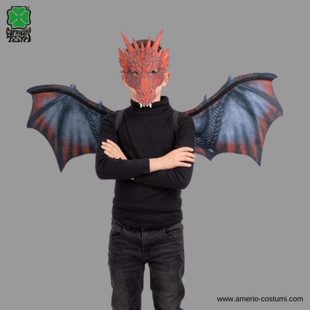 Ensemble composé d'un masque facial en caoutchouc avec élastique, et d'ailes en tissu avec élastique pour les épaules.