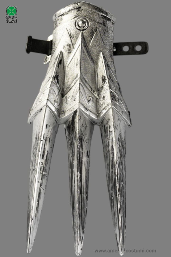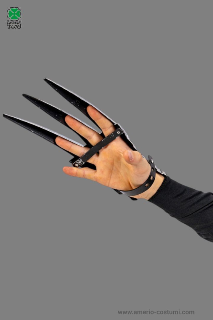 Gant en plastique avec lames factices, idéal pour les costumes d’horreur et les déguisements de films d’horreur pour Halloween.