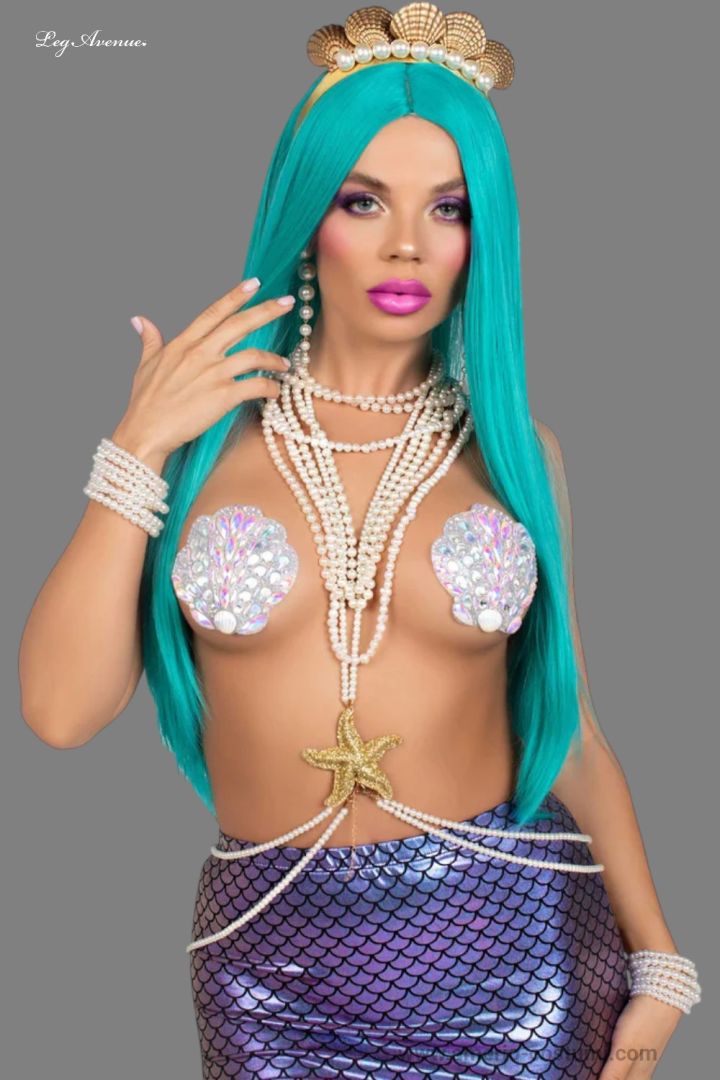 Cântă melodia sirenei tale cu pasties-urile bijuterii Shell de la Leg Avenue. Aceste accesorii strălucitoare pentru corp au strasuri luminoase și detalii delicate în formă de scoică, perfecte pentru a crea un costum DIY de sirenă sau pentru a adăuga o notă spectaculoasă ținutei tale de festival sau rave. Ușor de aplicat și sigure pentru piele, sunt accesoriul perfect pentru cei care doresc să strălucească cu stil și originalitate.